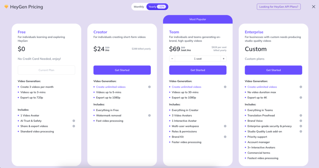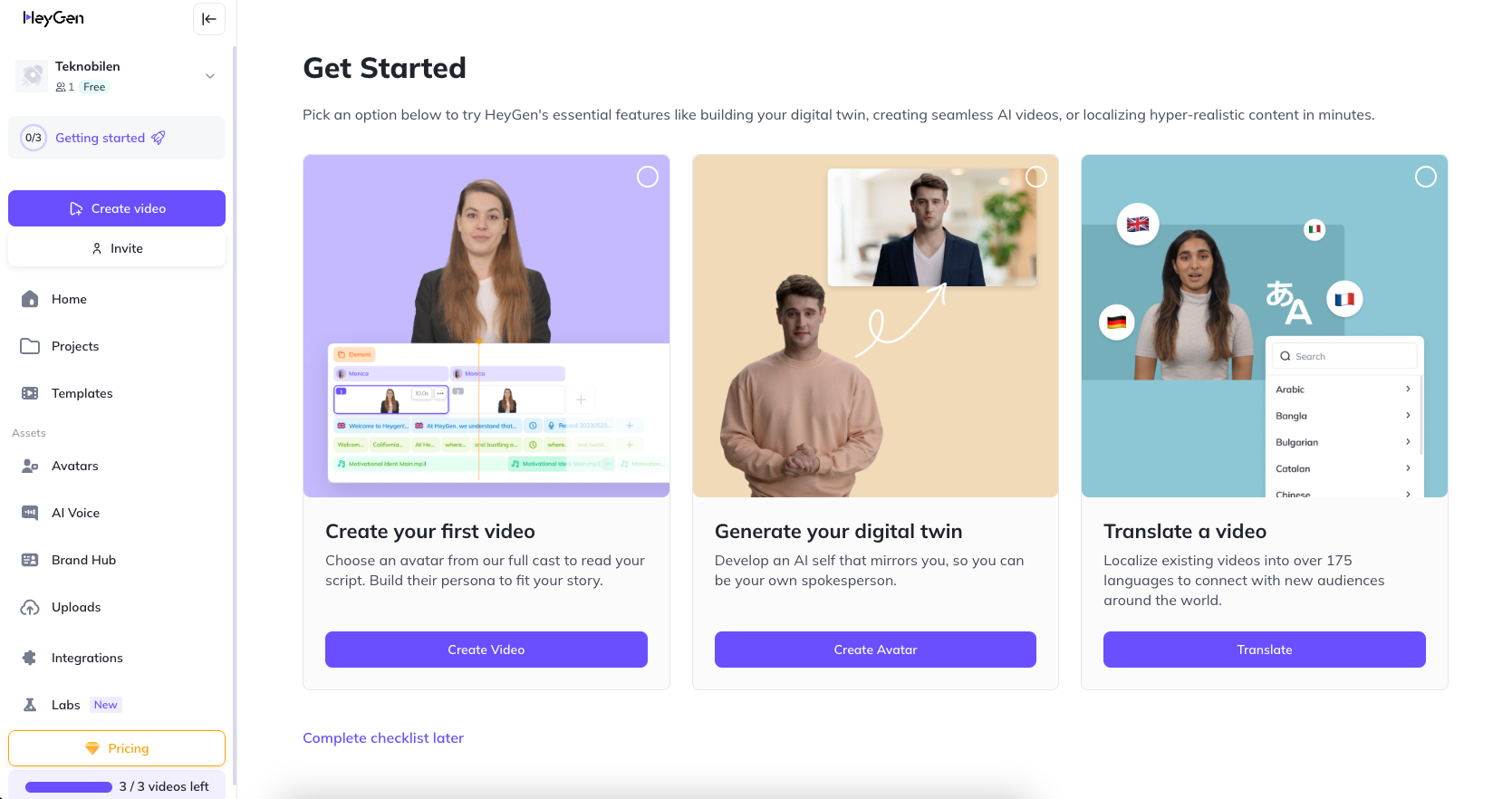 Heygen, iş videoları oluşturmak için yapay zeka kullanan bir video platformudur. Metinleri videolara dönüştürmek, 100’den fazla yapay zeka avatarı seçmek, 40’tan fazla dilde 300’den fazla ses kullanmak gibi özellikler sunar. Pazarlama, satış, eğitim, haber gibi çeşitli alanlarda profesyonel videolar üretmek için kullanılabilir. Ücretsiz denemek veya abone olmak mümkündür. Daha fazla başlangıç kredisiyle başlamak için aşağıdaki linkten üye olabilirsiniz.
